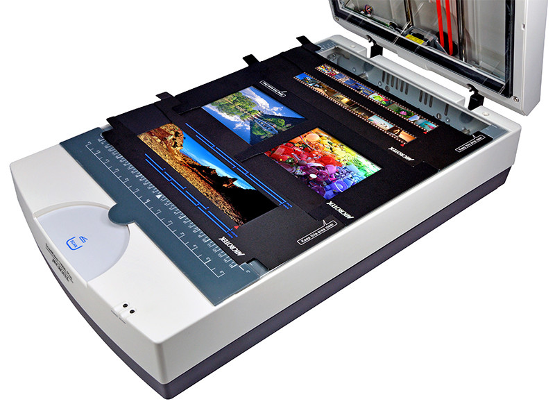 ScanMaker 1100XL Plus配備一個TMA-III型膠片適配器,透掃范圍達(dá)12″×16″,幾乎涵蓋所有膠片種類。隨機(jī)附贈的片閘讓您方便的掃描各種不同類型的膠片:如35mm、6×9cm和4”×5”大小,甚至可以達(dá)到6×17cm全景的大小。